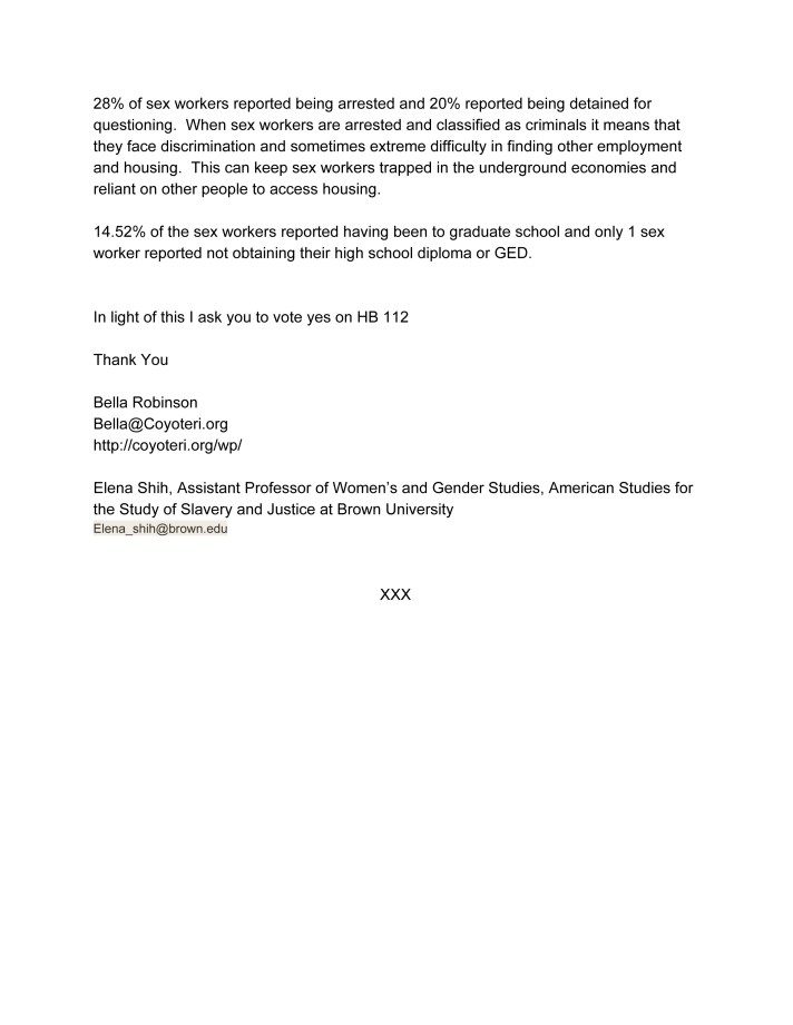 An email asking to be left anonymous commented: GET THE FEMALE COPS INVOLVED AND ON OUR SIDE! It is mysogyny. They just need a Female cop to go out with them and be in the wings after the arrest. This clearly happen to me in LA when the male John came in and paid and then they arrested me ( but we didn’t do anything –only my words of aggreeance got me arrested) and then the female cop knocks on the door and asked me over and over did he the male cop touch me because if that were the case the female cop was on my side In Los angeles female cops have to be in the wings awaiting on these sex arrests This law was passed back in the 90’s. It is mysogyny.