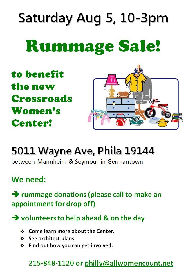 Rummage Sale to benefit the new Crossroads Women's Center