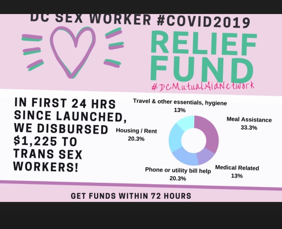 Good afternoon! I am pleased to let yall know we have so far disbursed $48,124 to DC Based Black, Brown, Indigenous, Trans sex workers in need. In the next day or so I will upload a new graphic displaying the breakdown. We have gotten over 336 requests and have fullfilled more 209 of them thus … Continue reading 2020 HIPS Fundraiser